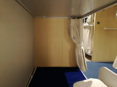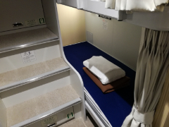 部屋へ戻ってベッドでくつろぎます。大島を出ると船内は一気に空き、筆者の乗る区画(定員16人)は貸し切り状態となりました。