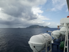 乗船して間もなく、さるびあ丸は神津島を離れます。窓から見える陸地が小さくなっていきます。
