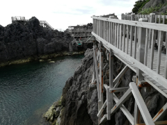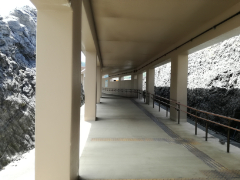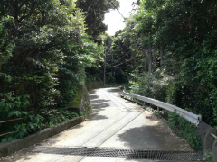 トンネルを抜けます。左手には遊歩道の続きが見えています。しかし足元はつながっておらず渡れません。