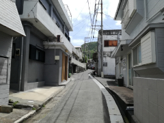 前浜の町並みは複雑です。建物が密に集まっていて、先を見通せないほどの急カーブと坂道が続きます。
