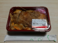 島内唯一のスーパー、まるはんで夕食を入手します。島寿司は売り切れなのでカツ丼を買いました。