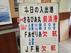 フェリーあぜりあ、ジェット船、飛行機のいずれも欠航となり、条件付き運航のさるびあ丸が唯一の頼みとなりました。防災無線によると当日予定されていた狂犬病ワクチン接種も欠航に伴い急遽延期とのことです。