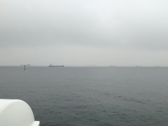 東京湾では何隻もの船が近くを通ります。視界から船が消えるタイミングがありません。
