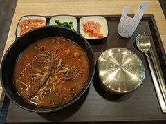 空港の食堂でクッパを注文します。思ったよりもやや辛くて汗を拭きながら食べました。