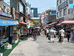 ソウル駅で首都圏電車1号線に乗り換え、ホテルの最寄り駅である新里門駅までやってきました。もう20時近いですが韓国はまだ明るいです。